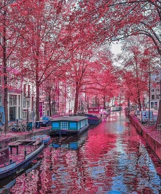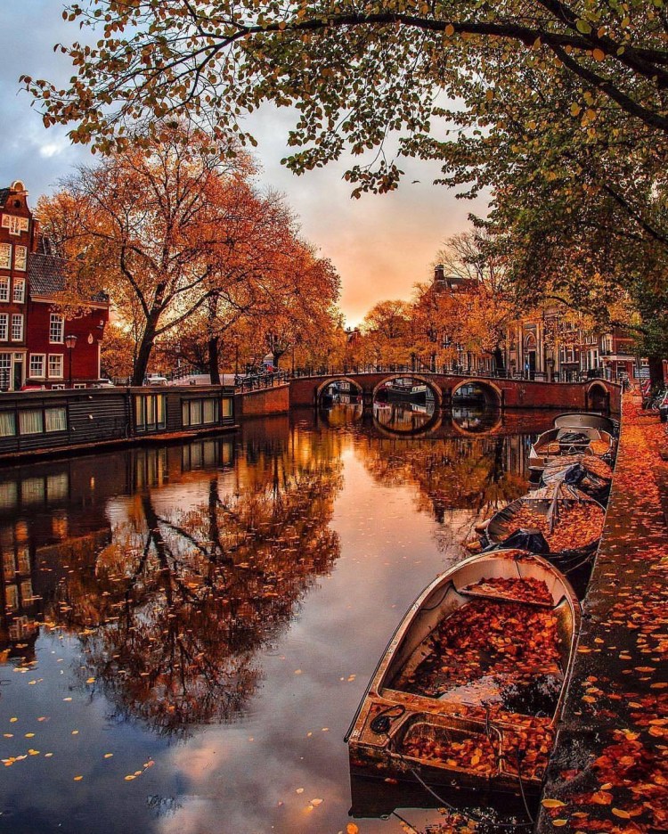 Mas voltando a realidade da fofa Amsterdam, vamos falar agora dos parques e das ruas cheias de árvores (principalmente às margens dos canais) e do colorido que elas proporcionam.