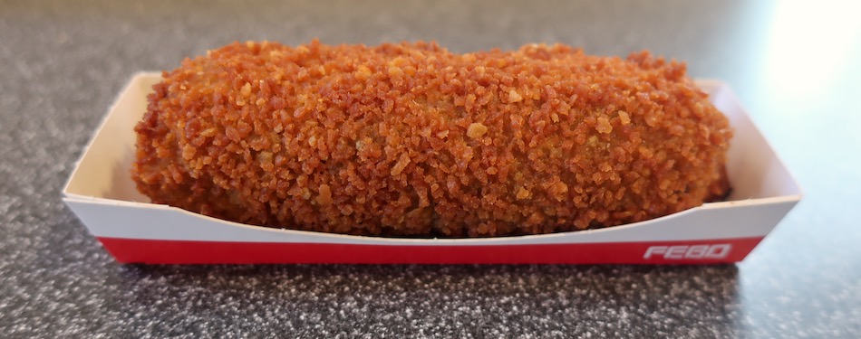 E o croquete do Febo? (sem querer jabar, mas já jabando), por cerca de € 2,00 você consegue comer um bem gostoso e recheado. Tem quem prefira os bichinhos crocantes a comer até um hambúrguer! Deve ser bom mesmo (água na boca). Lá o pessoal parece gostar de coisas mais carboidráticas (acabei de inventar essa palavra), deve ser porque gastam muitas calorias andando de bike, só pode!