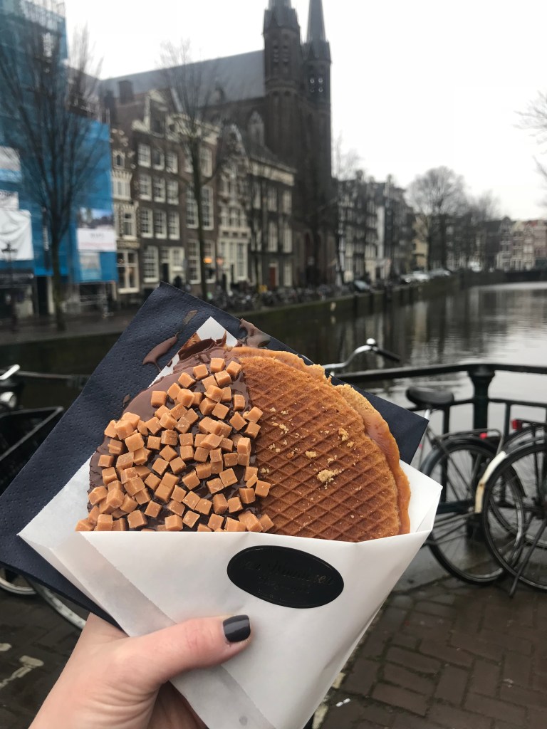 Infelizmente (ou felizmente?) não tem jeito, viajando não dá para ficar direto na dieta. Voltemos à sobremesa típica. Já ia me esquecendo dos stroopwafels, um tipo de waffle com calda que não dá para ficar sem comer. Olha, olha, hein!